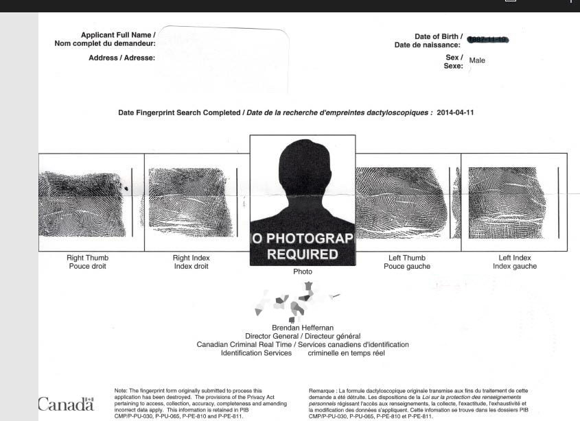 3.去加拿大皇家骑警处录入指纹(如使用方没有指纹要求,则不需要办理有指纹无犯罪证明)